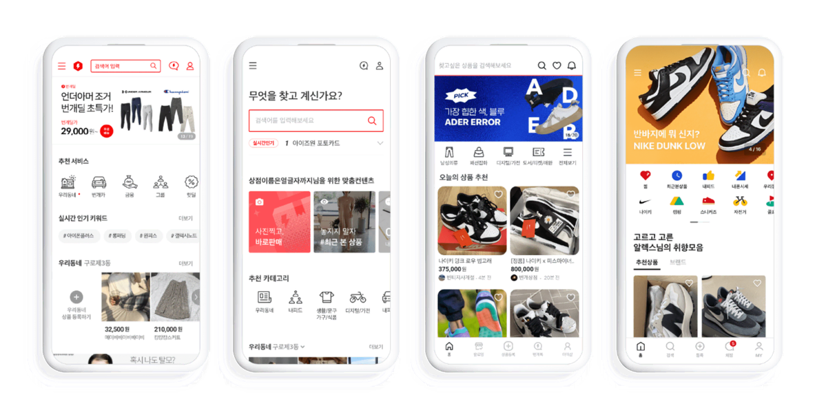 👆번개장터 2018~2021년 앱 화면 변천사