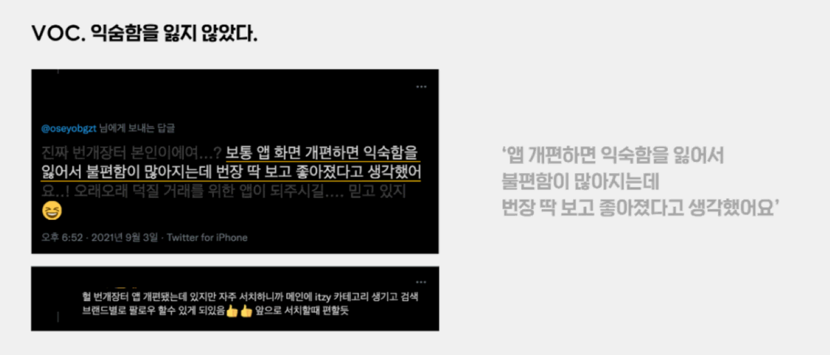 일반적으로 앱 UX/UI가 바뀌게 되면 기존 유저가 불편을 호소할 수 있는데요. 때문에 이번 앱 개편을 하면서 수많은 ABC 테스트 거치면서 점진적 배포로 진행하며 조심스러운 접근 방식을 선택했습니다. 다행히 사용자 VOC가 다른 개편 때에 비해 현저히 낮아서 감사하게 생각하고 있습니다 :)