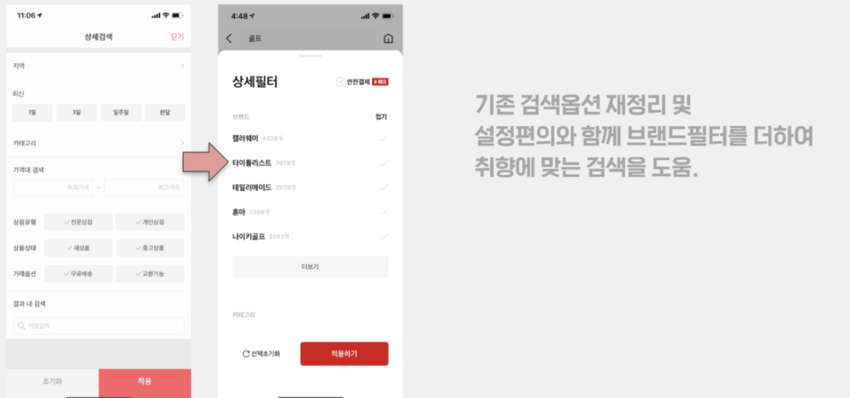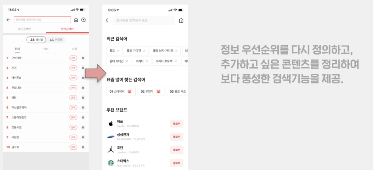 번개장터 유저 대부분은 원하는 상품을 구매하고자 하는 목적성이 높아요. 그렇다 보니 기존에는 검색 위주로 서비스를 이용하고 목적을 달성하면 이탈하는 경향을 보이기도 했는데요, 이번 개편에서는 검색 정확도를 높이는 동시에 앱 이탈률을 줄이고자 했습니다.