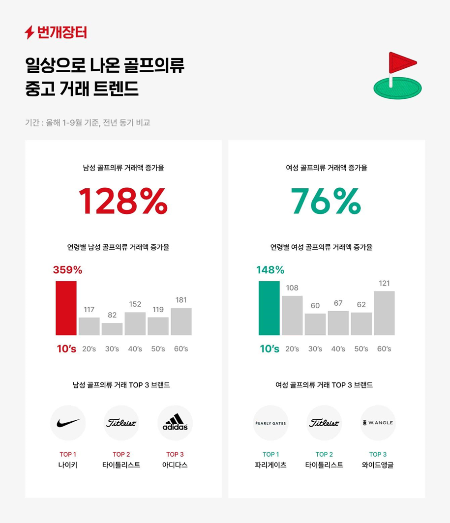 번개장터, 골프의류 중고거래 불티… 10대 남성 중고 거래액 359% 급증