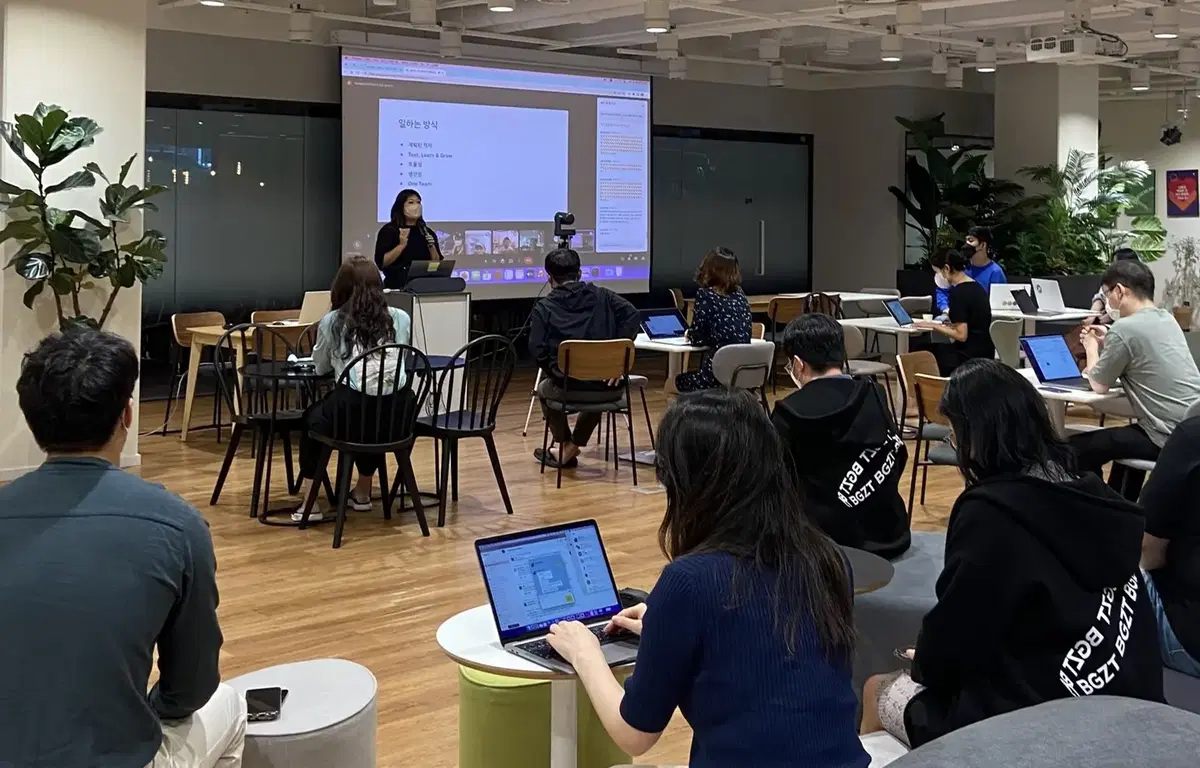 해결 가능한 부분은 빠르게 반영하여 피드백을 드리고, 반영이 어려운 부분은 어떤 이유로 어려운지 구성원분들이 이해하실 수 있도록 명확하게 커뮤니케이션하고 있습니다. 이 시간에는 전사 구성원 누구나 자유롭게 의견을 말하거나 질문을 할 수 있어요. 🙋🏻♀️