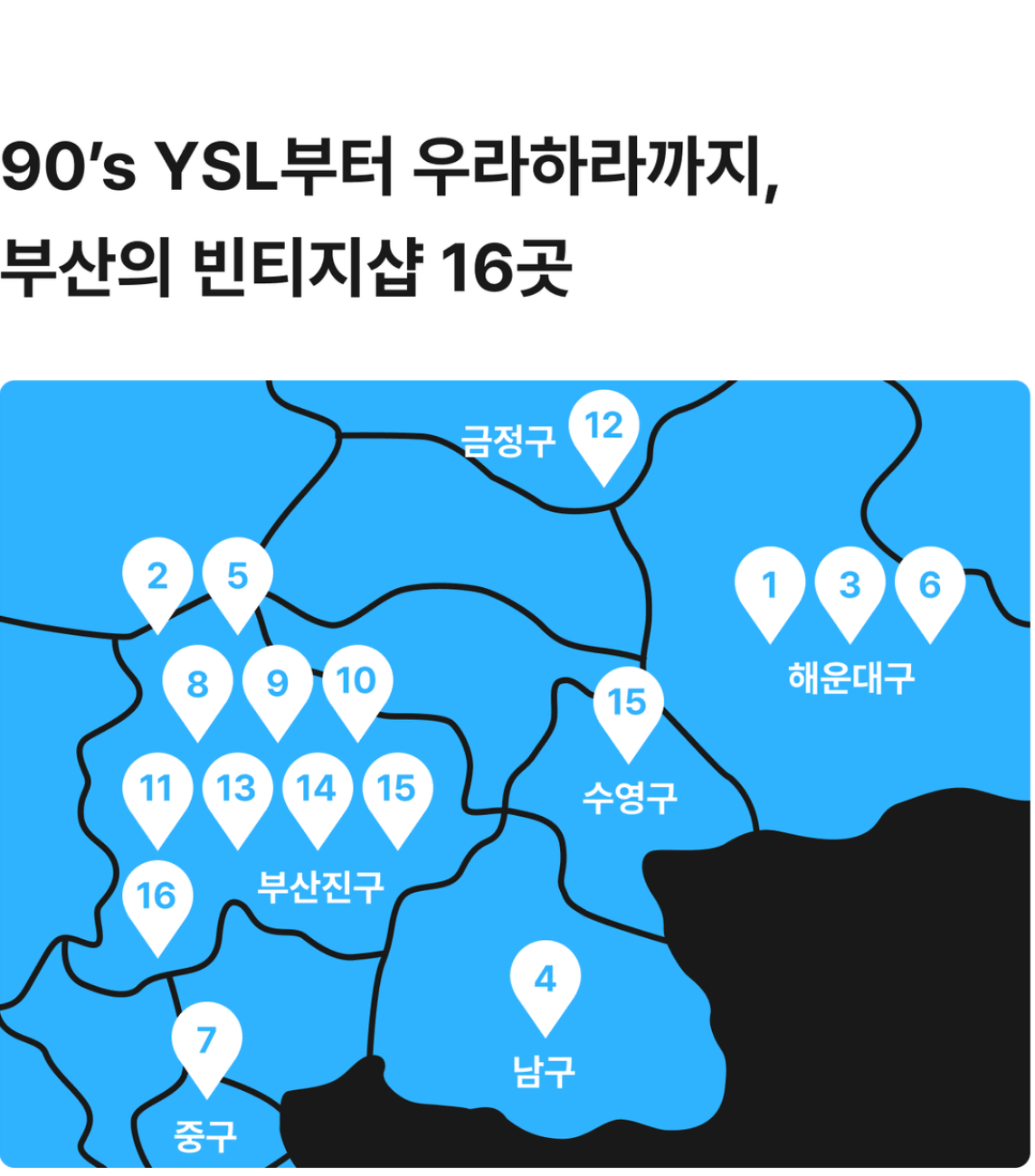계속해서 번개장터가 셀렉하는 빈티지샵 지도는