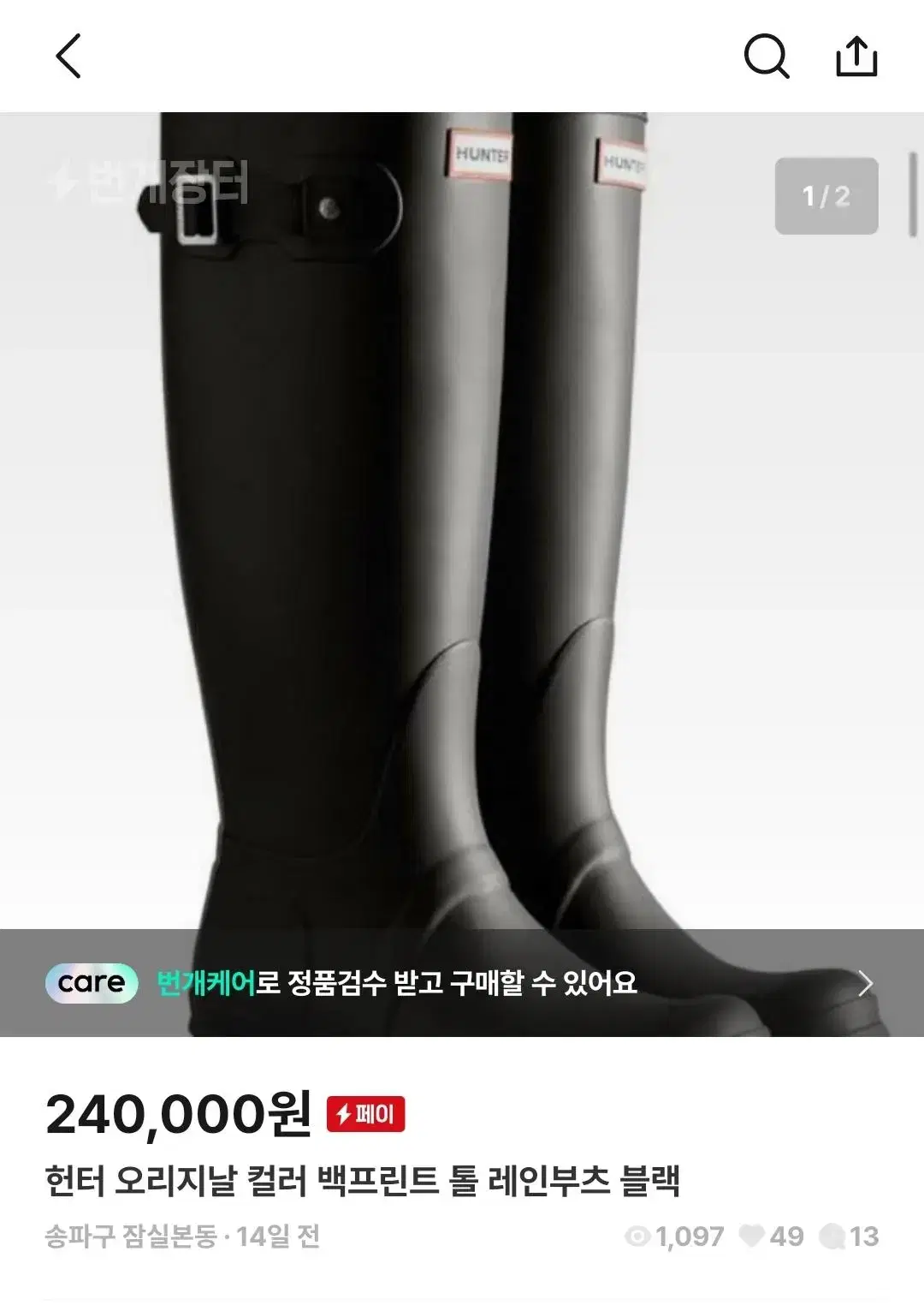 번개케어 가능! 헌터 레인부츠