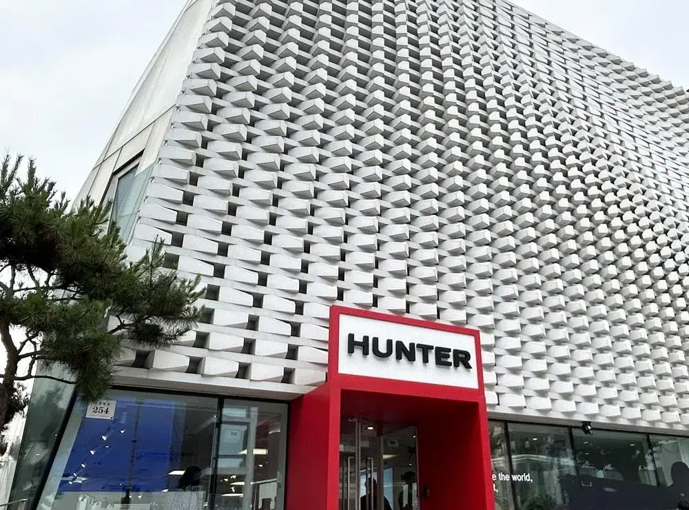 신발 위에도 플래그십 정문에도 같은 로고, 헌터의 국내 첫 플래그십