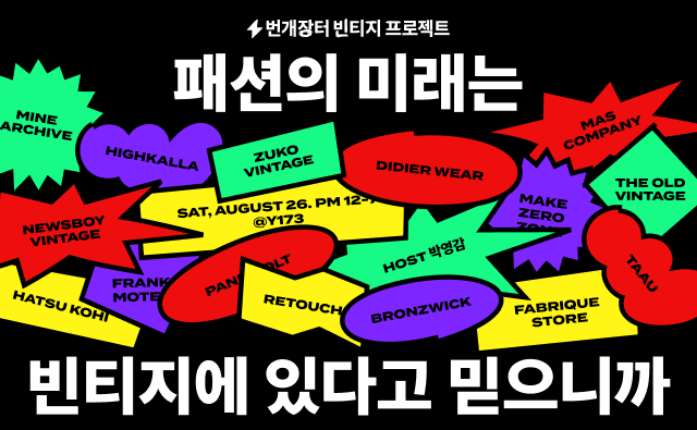번개장터는 ‘패션의 미래는 빈티지에 있다’는 가치를 바탕으로 패션 빈티지 생태계 성장을 위한 ‘번개장터 빈티지 프로젝트’를 기획하고, 첫 오프라인 행사로 ‘빈티지 대잔치’를 선보였다. ‘모두가 나만의 빈티지를 발견하는 기쁨을 누릴 수 있도록 한다’는 미션 아래 빈티지 애호가이자 포토그래퍼로 활동하고 있는 패션 유튜버 박영감과 디디에르웨어, 리터치, 마스컴퍼니 등 전국의 유명 빈티지숍이 참가했다.