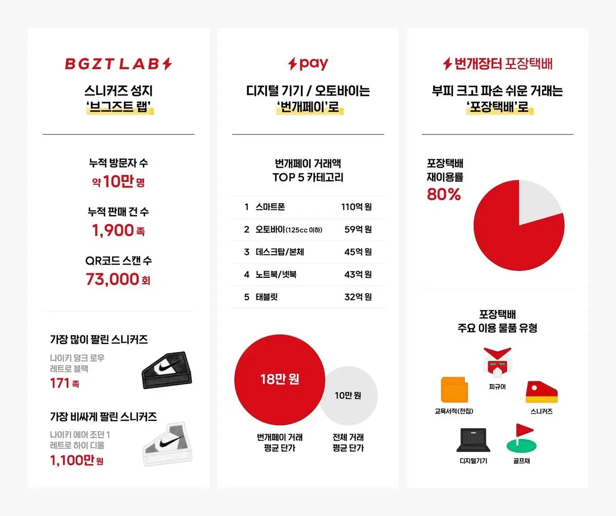 ▣ 고가 물품 거래는 ‘번개페이’로, 파손이 쉬운 거래는 ‘포장택배’로, 진화하는 비대면 중고거래