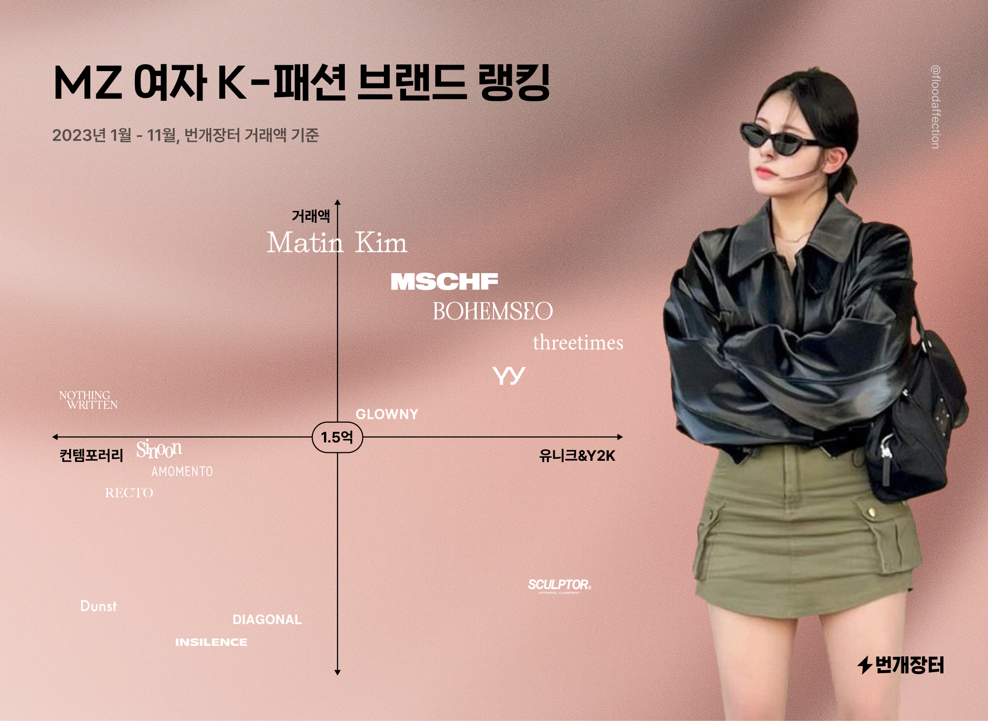 백 명이 있으면 백 가지의 취향이 있는 것도 당연하지만, 지금 이 순간 가장 뜨거운 패션이 무엇인지 놓치지 않는 것도 패피의 덕목이겠죠👚 올드머니가 트렌드의 중심에 선 이 순간, Y2K🎧와 스트리트 무드도 여전히 유행과 함께하고 있는데요👀 이러한 흐름에 K-브랜드가 가장 딱 맞는 ‘힙한’ 신상을 가장 빠르게 공개하고 있기 때문일까요? 인기 K-브랜드는 팬덤✨이 있다고 할 정도로 뜨거운 관심을 받고 있어요🔥 새 제품뿐 아니라 중고 제품까지 높은 수요를 보이는 것은 당연한 일이겠죠. 브랜드 파워가 높아 수요가 크고, 수요가 크니 시세가 떨어지지 않고, 가격 보전이 잘 되니 파는 사람도 신나고…(무한반복🔄 K-패션의 강한 브랜드 파워💪가 원활한 중고거래를 이끌고 있는 거죠! 그럼 올해 1월부터 11월까지, 2034 유저의 거래액을 기준으로 한 번개장터 K-브랜드 지형도🗺️를 지금부터 알아보겠습니다 👀