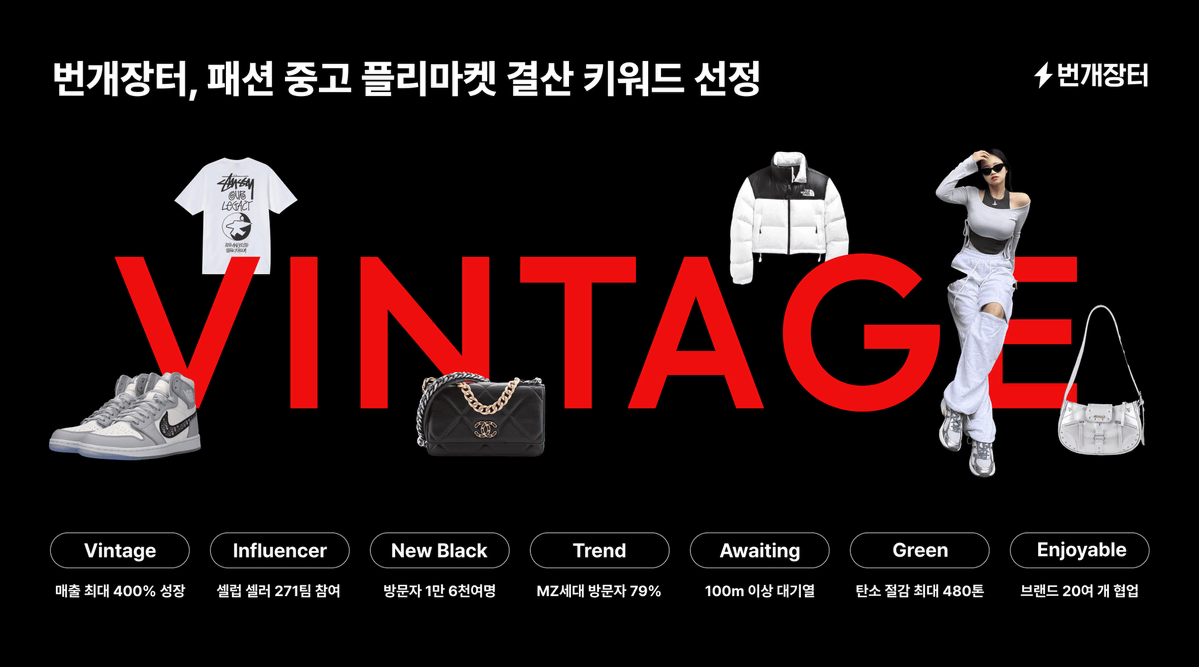 (2024년 2월 26일) 국내 대표 패션 중고거래 앱 번개장터(공동대표 강승현ㆍ최재화)가 '패션 중고 플리마켓 결산 키워드'로 'V.I.N.T.A.G.E.(빈티지)'를 선정했다.