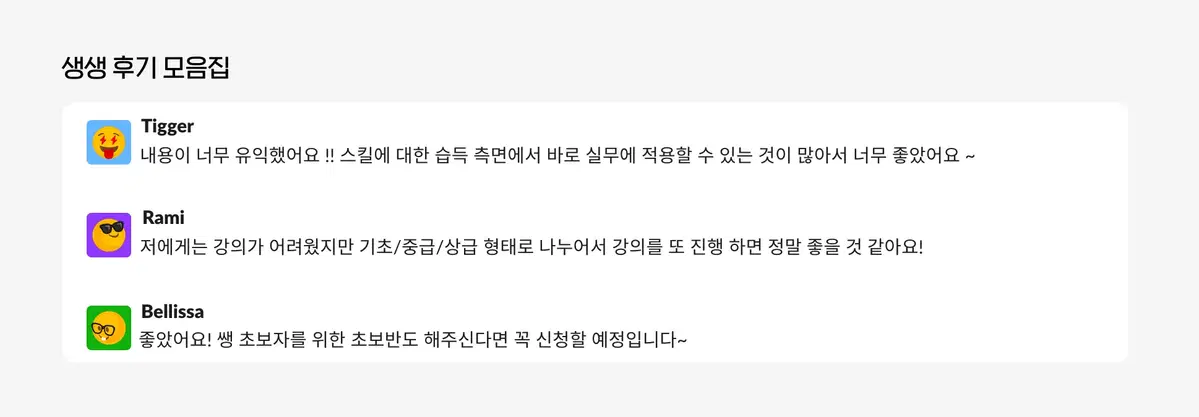 번개장터가 인증하는 업무 자동화의 멘토, 피플실의 Earnest가 구글 스프레드시트 활용법을 알기 쉽게 설명해 준 세미나가 열렸습니다. 스프레드시트의 전체적인 구조를 이해하고, 데이터로 다양한 함수를 실습하다 보니 1시간이 순삭 할 정도로 유용한 시간이었는데요. 아래 버니들의 생생한 후기만 보아도 이 세미나의 가치를 그대로 알 수가 있었답니다. 업무 스킬을 업그레이드하고 싶은 버니들의 집중도가 최상이었던 이번 세미나 ! 참석한 모두에게 도움이 되었기를 바랍니다 :)