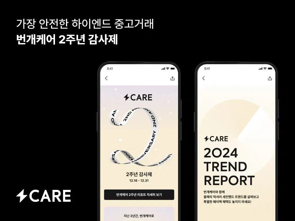 (2024년 12월 17일) 국내 대표 중고거래 플랫폼 번개장터(공동대표 강승현∙최재화)가 정품 검수 서비스 ‘번개케어’ 론칭 2주년 맞이 ‘2024 번개케어 트렌드 리포트’ 발표와 함께 감사제 프로모션을 실시한다.