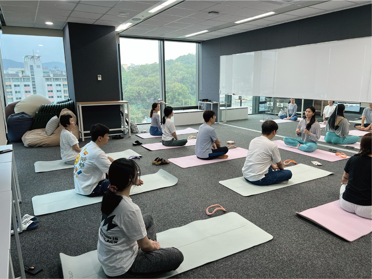 Yoda : 프로그램 참여하는 날은 식사도 가볍게 하게 되는데요. 스트레칭과 명상을 통해 스트레스 레벨이 낮아지는 것이 느껴지고, 오후 업무에 몰입도가 자연스럽게 높아져요. 몸과 마음이 편안해지니까 문제 해결 접근 방법도 더 유연해지는 것 같아요.