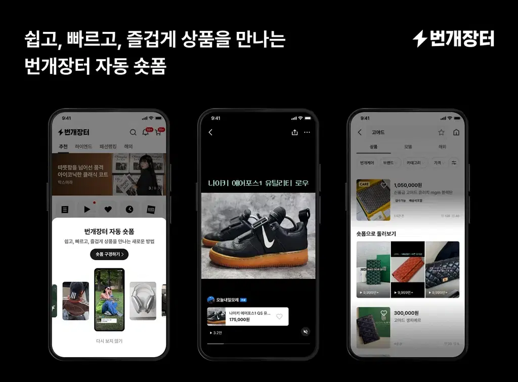 번개장터의 자동 숏폼은 판매자가 상품 이미지와 설명을 제공하면 번개장터가 직접 상품 정보가 담긴 동영상을 제작해주는 기능이다. 이를 통해 판매자는 더욱 간편하게 상품을 홍보할 수 있으며 구매자 역시 더 빠르고 쉽게 원하는 상품을 탐색할 수 있다.
