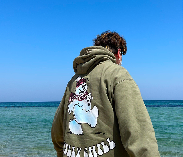 슈프림 21FW 스노우맨 후드 라이트올리브를 가장 좋아했어요. 후면 프린팅이 너무 귀여워서 찾아봤는데, 국내에 매물도 없고 구하기 힘든 귀한 제품이더라고요. 그런데도 너무 갖고 싶어서 해외 중고거래 플랫폼까지 뒤져가며 겨우 구매했답니다.