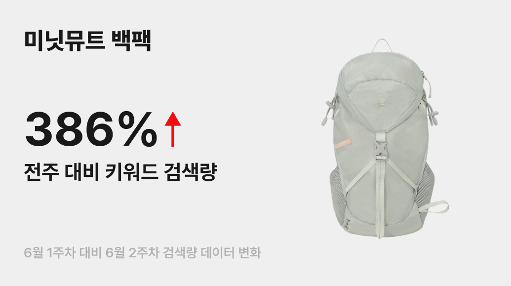 지금 가장 뜨거운 가방 브랜드를 뽑으라면 바로 ‘미닛뮤트’가 아닐까 싶은데요. 번개장터에서 ‘미닛뮤트 백팩’ 키워드 검색량이 전주 대비 386% 증가했어요. 또한 여성의류 검색어 클릭량에서 ‘미닛뮤트 스포티’, ‘미닛뮤트 백팩’, ‘미닛뮤트’가 차례로 1, 2, 3위를 차지하기도 했답니다.