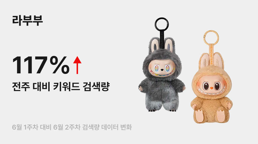 중국 아트토이 브랜드 팝마트의 캐릭터 인형 ‘라부부(LABUBU)’가 여전히 뜨거운 인기를 누리고 있어요. 번개장터 앱에서도 전주 대비 라부부 검색량이 117% 증가하면서 전체 기준 검색량 증감순 1위를 기록했는데요. ‘라부부’는 2015년 홍콩 출신 아트토이 작가 룽카싱이 북유럽 신화에서 영감을 받아 만든 이빨 달린 요정 캐릭터입니다. 2019년 팝마트가 독점 라이선스를 획득한 후 랜덤 박스 안에 든 캐릭터 인형으로 변신했죠.