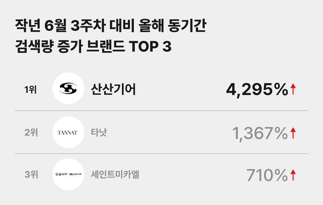작년 동기간 대비 떠오르는 국내 브랜드 TOP 3️⃣