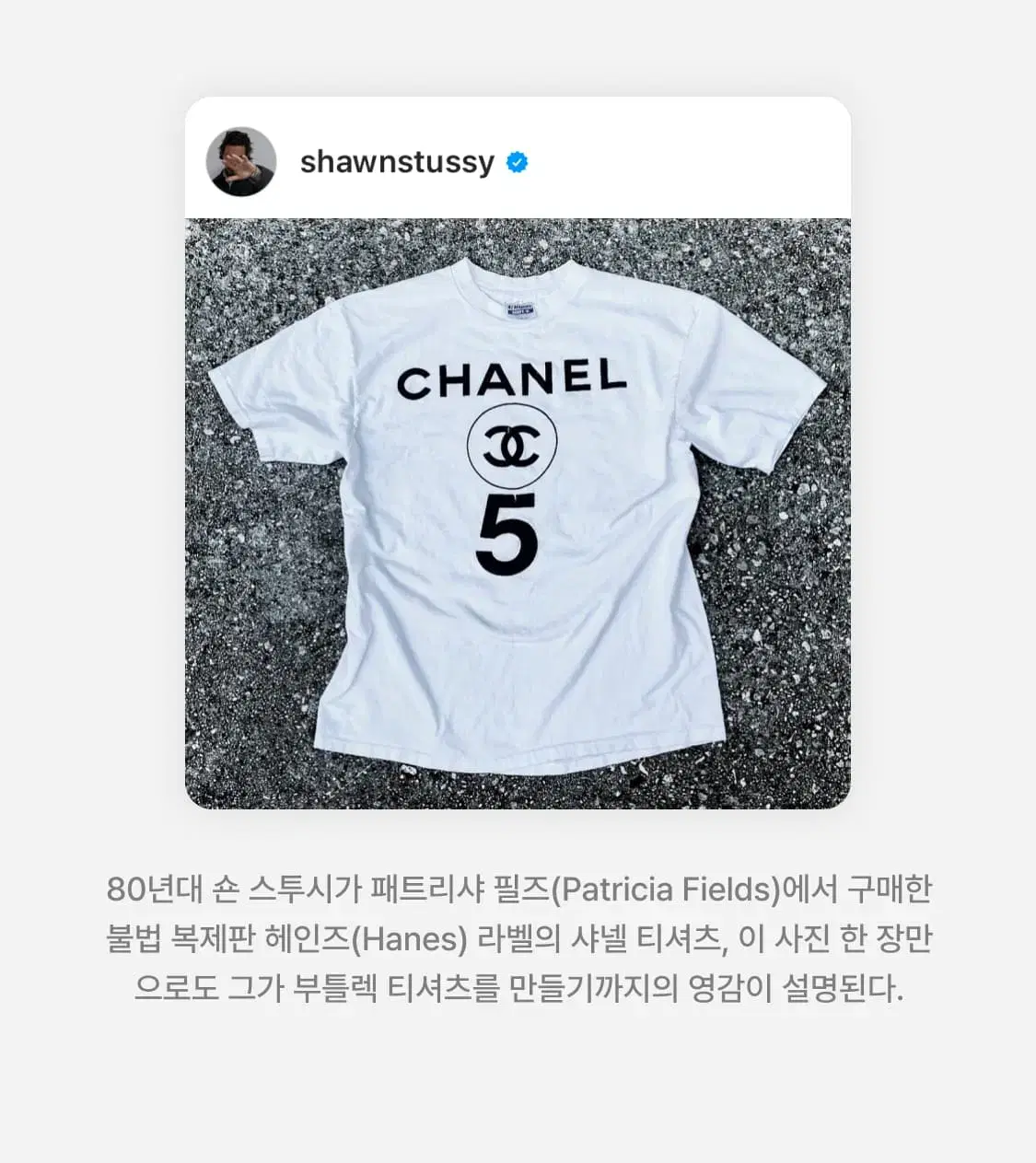 "숀 스투시는 스투시가 샤넬처럼 보이길 원한 것이 아니었다. 남부 캘리포니아와 뉴욕 거리가 우리 본연의 자리지만, 그는 그 브랜드가 가지고 있는 아우라를 원했다. 나는 줄곧 페이크 구찌, 루이뷔통 아이템을 입었다. 초기 힙합룩이다. 힙합은 항상 럭셔리를 추구해쏙, 스투시는 이를 리믹스하는 영리한 방법을 찾았다."