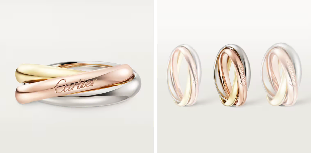 까르띠에를 대표하는 주얼리로는 ‘LOVE’와 ‘트리니티’ 컬렉션을 꼽을 수 있습니다. 까르띠에 전 모델 중에서 LOVE는 번개장터 거래량 1위와 2위, 트리니티는 3위를 차지할 정도로 인기가 많은 제품이죠.