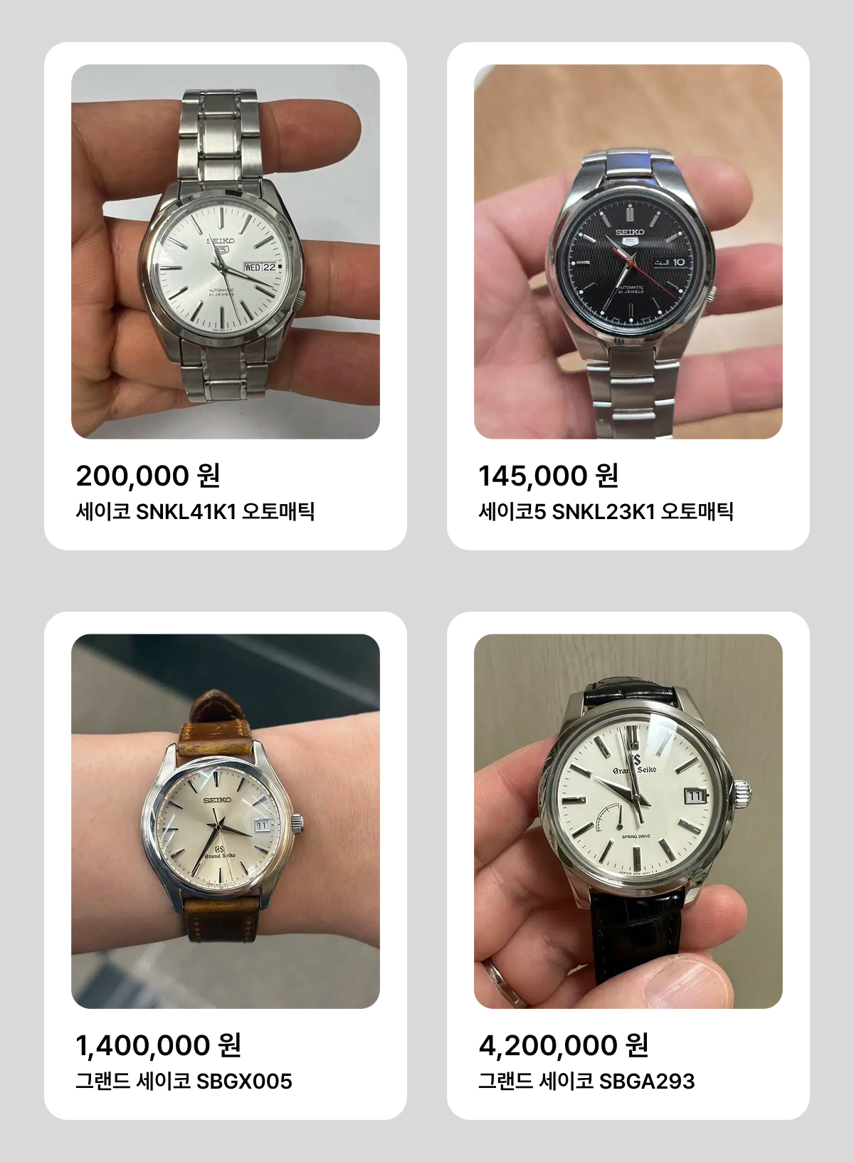 하이엔드 워치를 찾는다면, 세이코의 기술력을 모두 쏟아부은 브랜드 ‘그랜드 세이코(Grand Seiko)’를 눈여겨봐도 좋아요. 일본의 자연에서 영감을 얻은 섬세한 다이얼 디자인과 거울처럼 완벽한 표면을 만드는 '자라츠 연마' 기술은 브랜드의 철학을 그대로 보여주죠. 그랜드 세이코는 로고보다는 시계 자체의 아름다움이 취향인 분들에게 탁월한 선택이 될 거예요. 아날로그와 빈티지를 향한 수요는 앞으로도 커져갈 테니, 혹시 관심 있다면 지금 번개장터에서 한발 빠르게 소장하는 쪽을 추천드려요.