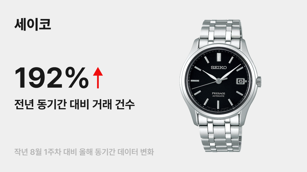스마트워치가 편하긴 하지만, 시간만큼은 ‘클래식’하게 즐기고 싶은 마음일까요? 디지털 화면 대신 아날로그 감성을 찾는 사람들이 늘어나면서, 클래식 워치가 다시 주목받고 있어요. 그 중심에는 일본의 정교한 기술력을 담은 브랜드 ‘세이코(Seiko)’가 있습니다. 번개장터에서도 전년 동기간 대비 거래 건수가 192%나 증가하며 최근 들어 꾸준한 상승세를 보이고 있어요.
