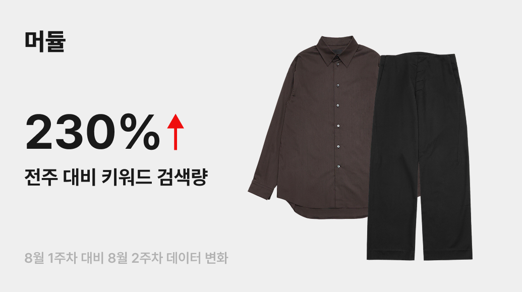 다가오는 가을, 위시리스트 채울 준비 되셨나요? 아침 저녁으로 선선한 바람이 불기 시작하니 브랜드들의 FW 발매 소식이 하나둘씩 들려오고 있어요. 국내 컨템포러리 브랜드들도 다음 계절을 맞이할 손님들을 위해 분주히 움직이고 있는데요. 그중에서도 대표주자로 꼽히는 브랜드가 바로 ‘머듈(Mudule)’입니다. 이번 주 번개장터에서 ‘머듈’ 키워드 검색량이 지난주 대비 230% 급상승하며 벌써부터 뜨거운 관심을 받고 있죠.