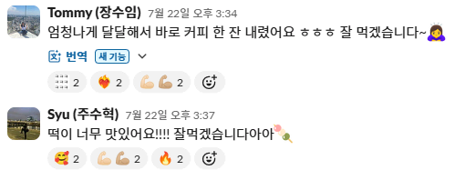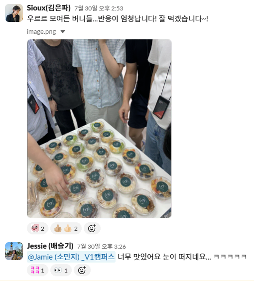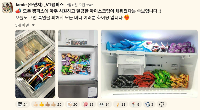 뜨거운 열기 속에서도 전사 목표를 향해 힘을 내고 있는 버니들을 응원하기 위해, 컬처팀에서 특별한 간식 이벤트를 준비했습니다. 무더위와 바쁜 업무 속에서도 힘을 잃지 않도록, 시원하고 달콤하게 여름을 채워준 번개장터의 이야기를 소개합니다 ✨