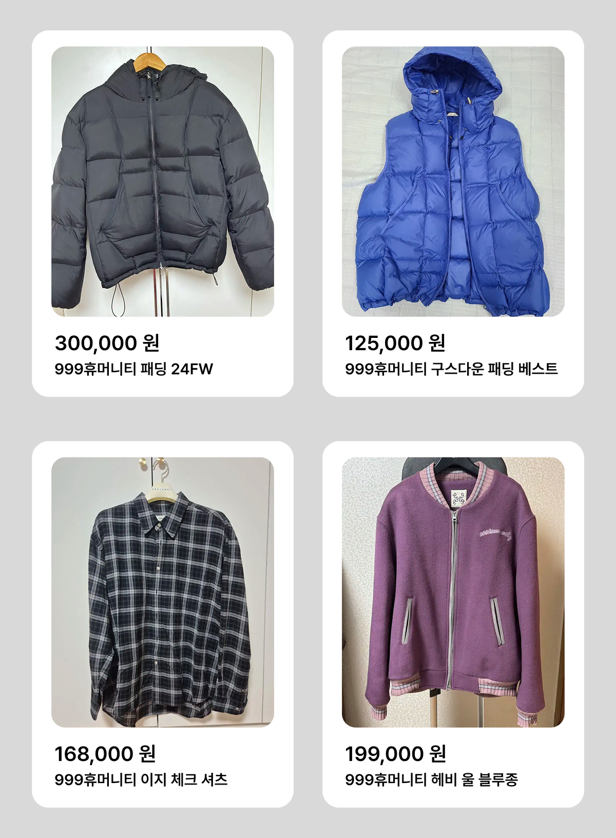 이처럼 경량 패딩은 실용적이면서도 패셔너블한 아이템으로 진화하며, 매년 새로운 감각을 더해 시장을 이끌고 있어요. 번개장터에서 999휴머니티를 비롯해 다양한 패딩 아이템을 만나보고, 다가오는 시즌을 가장 먼저 준비해 보는 건 어떨까요?