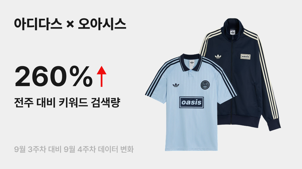 영국의 전설적인 밴드 ‘오아시스(Oasis)’에게 제2의 전성기가 찾아온 걸까요? 작년 재결합 소식부터 올해 월드 투어, 그리고 지난 9월 22일 ‘아디다스 오리지널스(Adidas Originals)’와의 협업 컬렉션까지 국내 발매되며 뜨거운 화제를 모았어요. 번개장터에서도 ‘아디다스 오아시스’ 키워드 검색량이 전주 대비 260% 급증하며 그 인기를 증명했죠.
