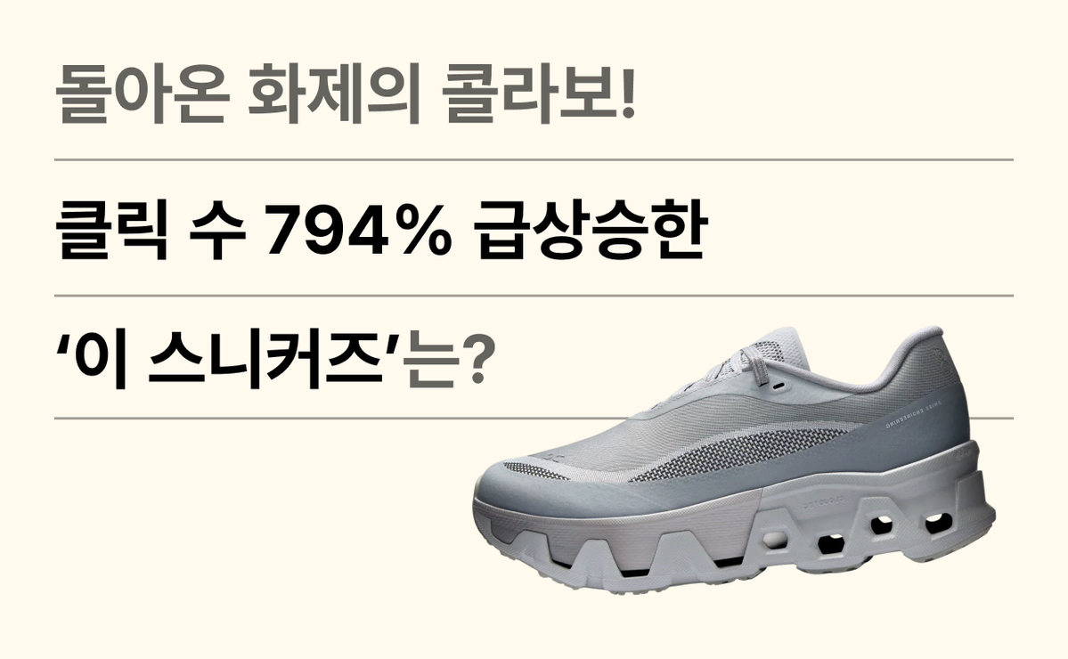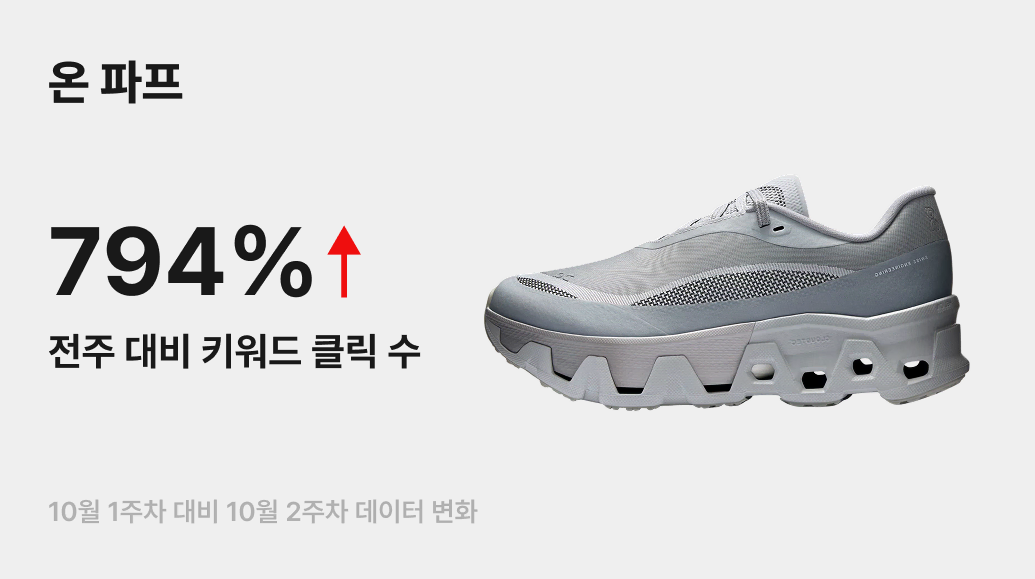 지난 10월 9일, 스위스 스포츠웨어 브랜드 ‘온(On)’과 한국의 디자인 콜렉티브 ‘포스트 아카이브 팩션(PAF)’의 협업 컬렉션이 국내에 출시됐어요. 번개장터에서도 ‘온 파프’ 키워드 클릭 수가 전주 대비 794% 급상승하며, 그 뜨거운 인기를 증명했습니다.