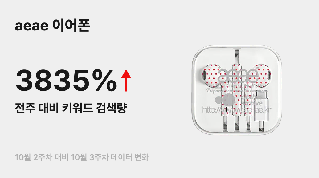 무선 이어폰이 대세이던 흐름을 깨고, 요즘 패션계는 다시 유선 이어폰을 주목하고 있어요. 충전 없이 바로 쓰는 실용성은 물론, '레트로 감성'까지 갖춘 액세서리로 각광받고 있는데요. 여기서 끝이 아닙니다. 최근 패션 브랜드 aeae에서 땡땡이 패턴을 더한 이어폰, 'AE CUSTOM EARPHONES'를 출시하며 다시 한번 유선 이어폰 열풍에 불을 지폈어요. 번개장터에서 ‘aeae 이어폰’ 검색량이 전주 대비 무려 3835% 급상승했고, 처음 제품을 공개한 더현대 서울 팝업 스토어의 대기 줄 역시 끊이질 않았죠.