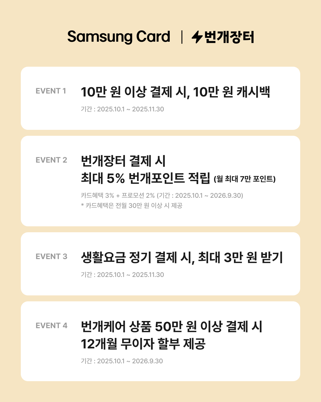 또한 번개포인트 추가 적립 프로모션부터 번개케어 상품 결제 시 12개월 무이자할부 혜택까지! (기간 : 25.10.1 ~ 26.9.30)