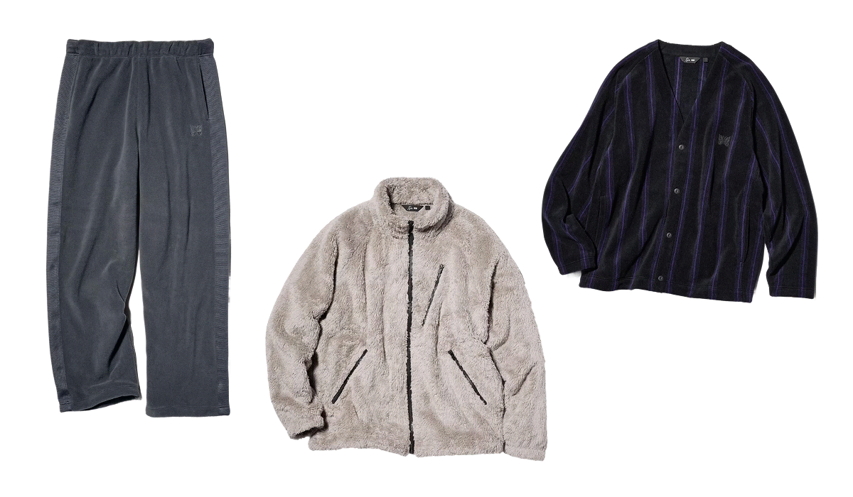 이번 컬렉션은 니들스 특유의 컬트적인 감성을 유니클로의 플리스 소재를 기반으로 재해석한 것이 특징입니다. 니들스의 상징인 나비 로고 자수와 강렬한 퍼플 컬러를 적용해 고급스러운 분위기를 더했죠. 대표 제품인 플리스 오버사이즈 가디건은 부드럽고 풍성한 플리스 소재에 조개 모양 단추와 나비 로고를 더해 소장 가치를 높였습니다. 와이드 실루엣의 플리스 팬츠 역시 니들스의 상징적인 사이드 테이프와 나비 로고 자수로 스트릿 무드를 완성했어요.
