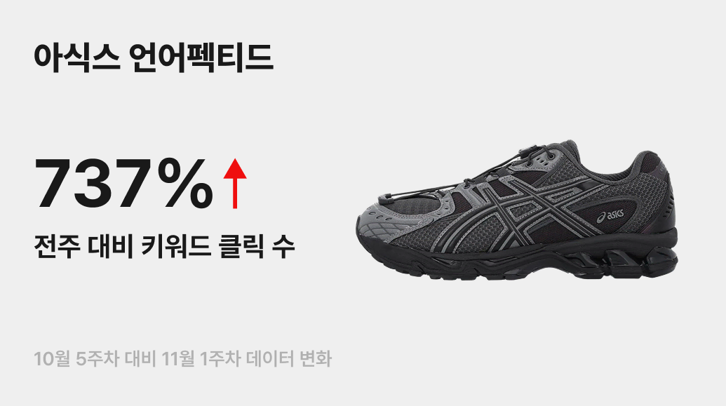 콜라보 스니커즈, 어디까지 들어보셨나요? 지난 11월 7일 ‘아식스(ASICS)’와 국내 브랜드 ‘언어펙티드(unaffected)’의 세 번째 협업 스니커즈, ‘젤-님버스 10.1’이 발매와 동시에 큰 화제를 모았어요. 번개장터에서도 ‘아식스 언어펙티드’ 키워드 클릭 수가 737% 급상승하며 그 뜨거운 인기를 증명했습니다.