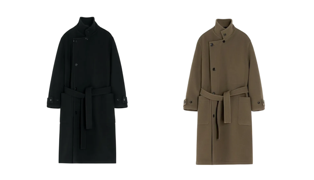 추운 겨울에도 코트는 포기할 수 없는 이른바 ‘얼죽코’를 위해 ‘르메르 랩코트’를 추천해요. 허리 벨트로 여며 입는 랩(Wrap) 디테일이 특징으로, 착용하는 사람의 실루엣에 따라 유연하게 흘러내리는 핏이 매력적이에요. 움직임에 따라 자연스럽게 완성되는 드레이프는 르메르 특유의 미니멀한 미감을 잘 보여준답니다.