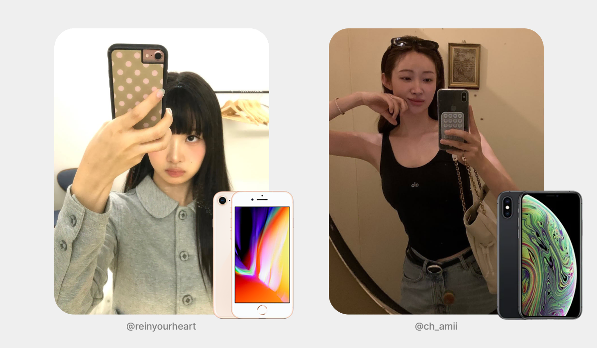 먼저 올드 아이폰 중에서는 전주 대비 198% 검색량 증가를 기록한 ‘아이폰 8’이 돋보입니다. 특유의 맑고 깨끗한 색감 덕분에 꾸준히 회자되는 모델인데요. 햇살 아래에서 촬영했을 때 피사체의 톤이 예쁘게 살아나고, 빈티지한 빛 번짐이 그대로 담기는 것이 특징이에요. 자연스러운 표현력과 청량한 무드를 연출하고 싶을 때 적합한 모델입니다.