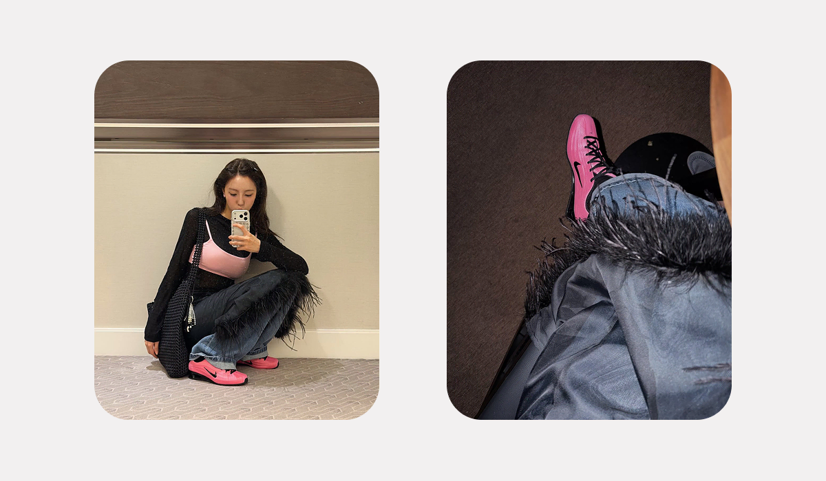효민 역시 나이키 Z 샥스를 활용한 스타일링을 여러 차례 선보였어요. 핑크 컬러 샥스를 포인트로 다양한 소재의 아이템과 믹스매치한 룩은 샥스의 Y2K 무드를 자연스럽게 보여주는 대표적인 예시죠. 실루엣이 강한 스타일에도 자연스럽게 스며드는 걸 보면, 샥스 모델이 왜 꾸준히 인기를 이어가고 있는지 단번에 이해됩니다. 현재 번개장터에서는 1,300여 개의 나이키 샥스 매물이 올라와 있어요. 추운 날씨에도 스타일을 챙기고 싶다면, 원하는 컬러와 모델을 지금 바로 발 빠르게 만나보세요.