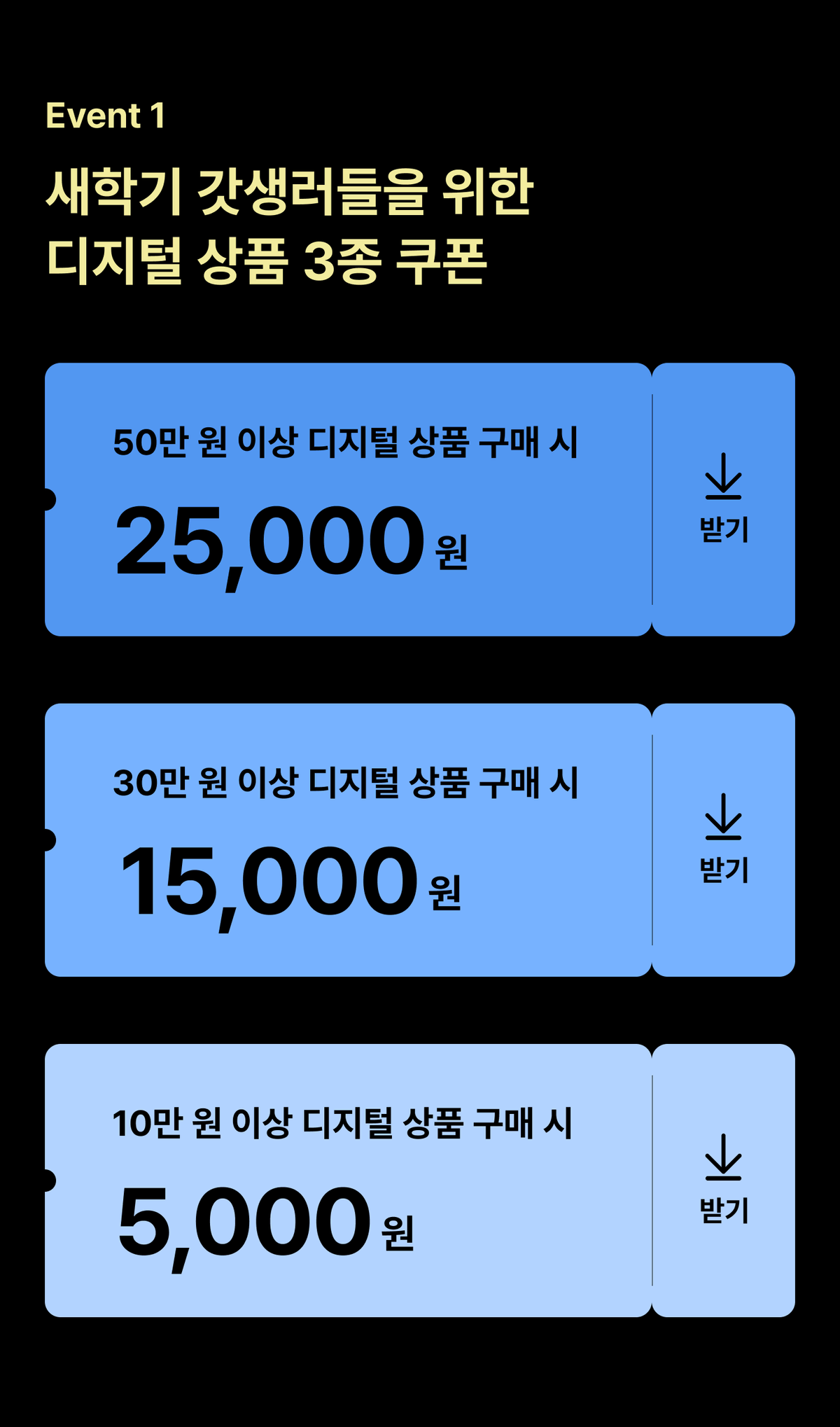 EVENT 1. 새학기 갓생러들을 위한 디지털 상품 3종 쿠폰