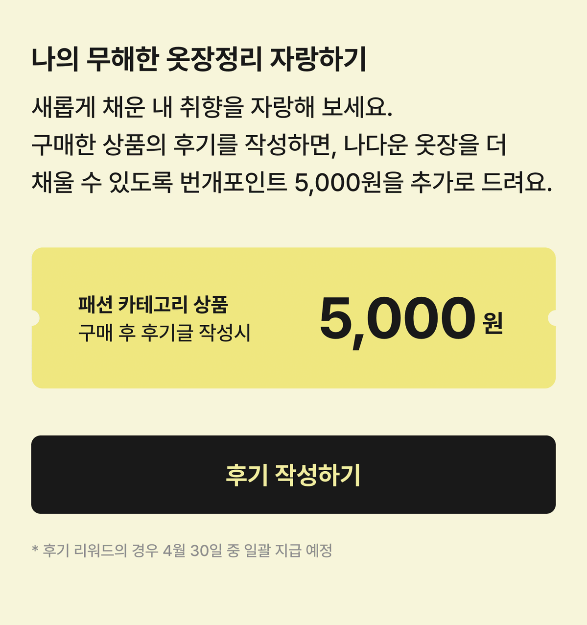 나의 무해한 옷장정리 자랑하기: 패션 카테고리 상품 구매 후 후기글 작성 시 번개포인트 5,000원을 추가로 드립니다!