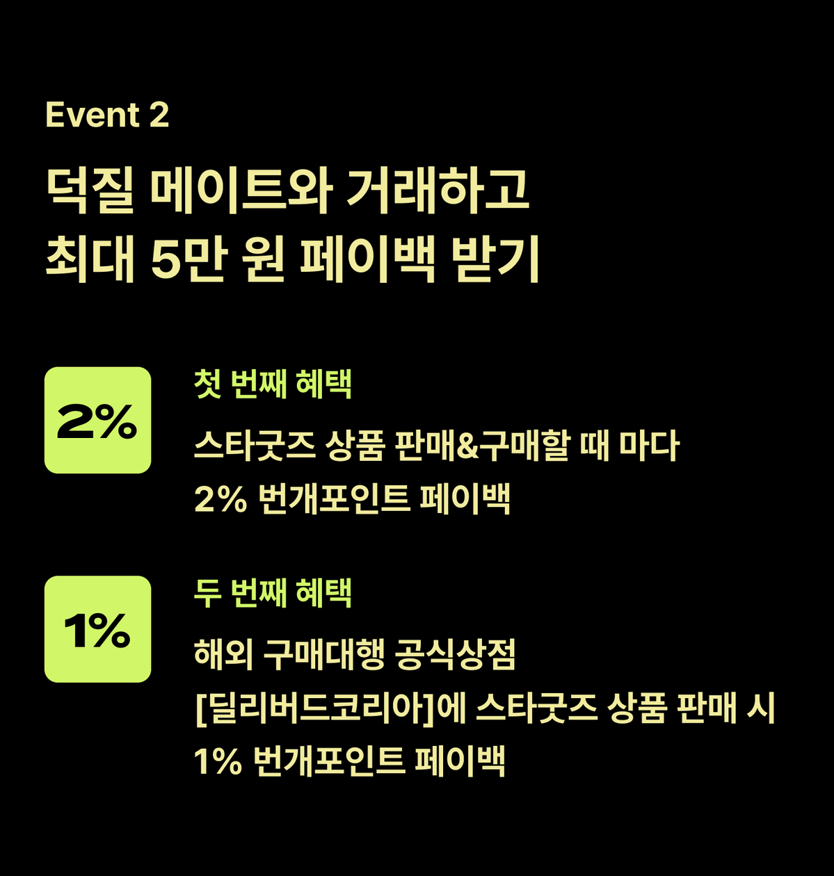 Event 2. 덕질 메이트와 거래하고 최대 5만원 페이백 받기