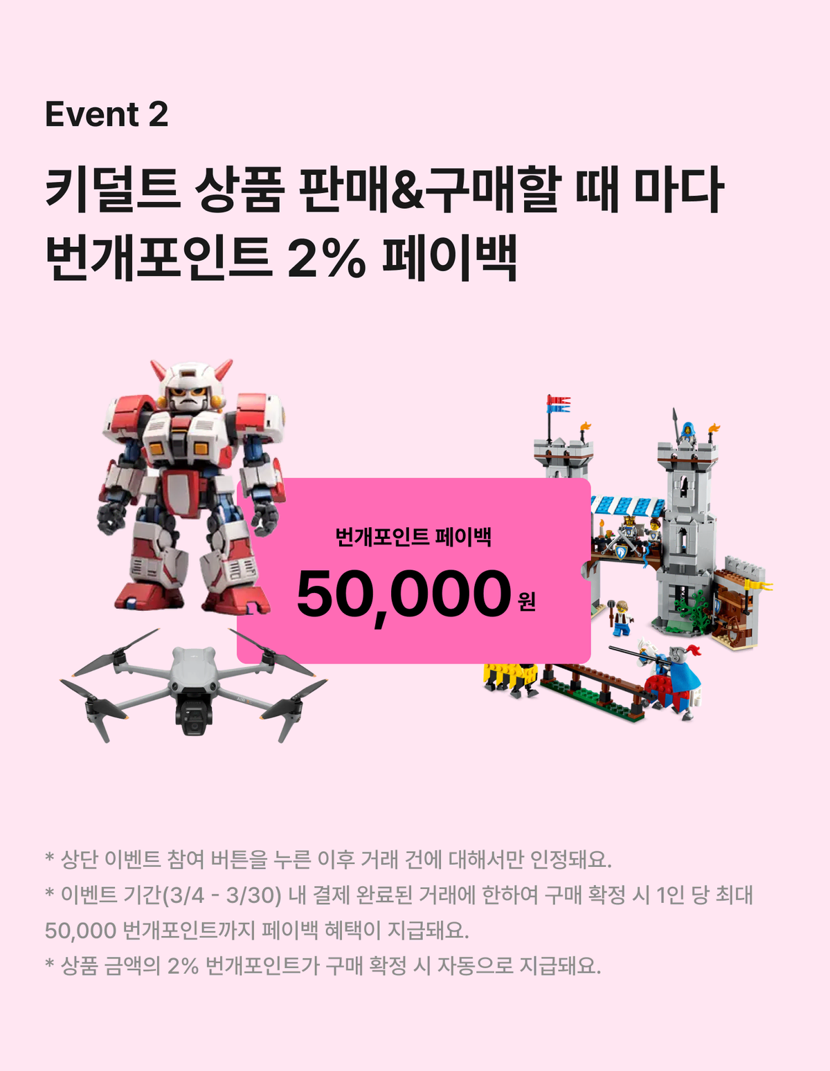 Event 2. 키덜트 상품 판매&구매할 때 마다 번개포인트 2% 페이백