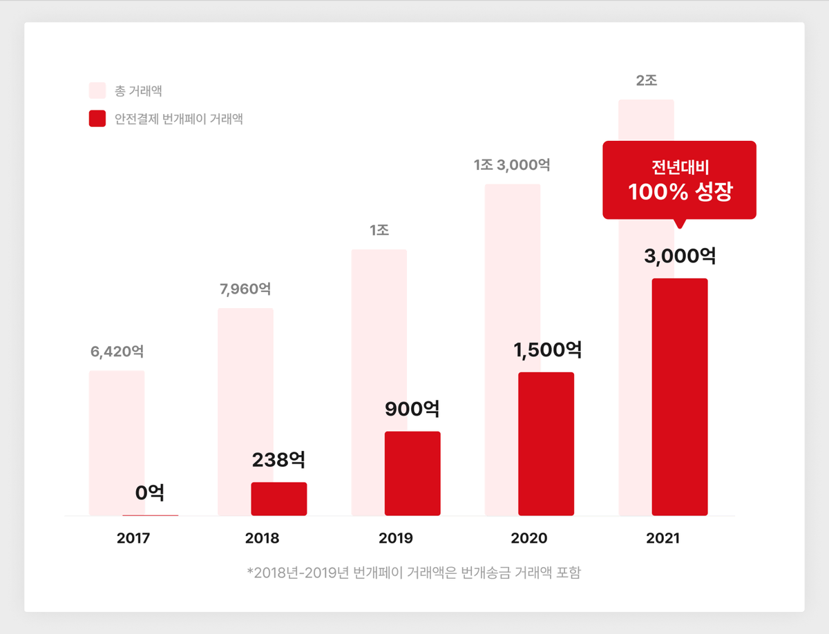 2021년 거래액이 전 년 대비 100%나 성장했답니다.