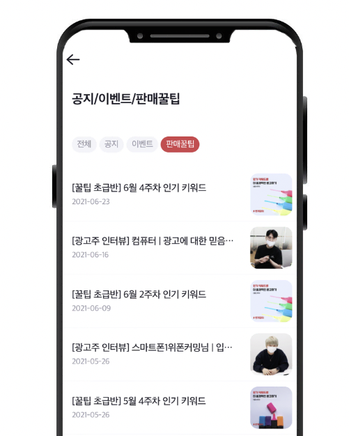 내 상점의 팔로워를 늘릴 수 있는 방법부터 어떤 배송 서비스를 선택해야 하는지, 세금 신고는 어떻게 해야 하는지 등 판매를 위한 콘텐츠를 확인할 수 있고 광고를 통해 매출을 증가시킨 판매자들의 생생한 인터뷰까지 누구나 판매를 진행하며 궁금해하고 도움을 받을 수 있는 다양한 콘텐츠가 준비되어 있습니다.