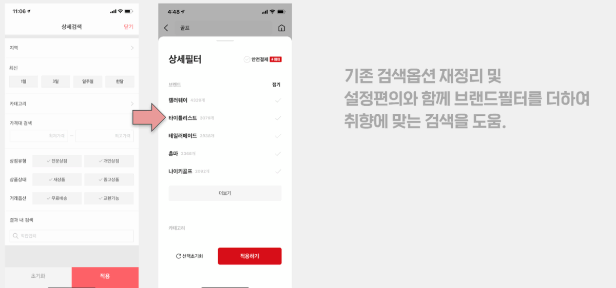 이번 앱 대개편이요. 브랜드 리프레쉬 차원에서 홈 새단장과 함께 디자인 시스템도 새로 구축했거든요. 우리 앱을 새로운 관점에서 바라보고 고객의 잠재적 니즈를 찾아 세련된 UI와 완성도 높은 고객 경험을 제공할 수 있었던 것 같아요. 당시 고객의 반응도 무척 좋았고, 번개장터와 함께 저 또한 크게 성장할 수 있었던 계기가 되었던 프로젝트였어요.